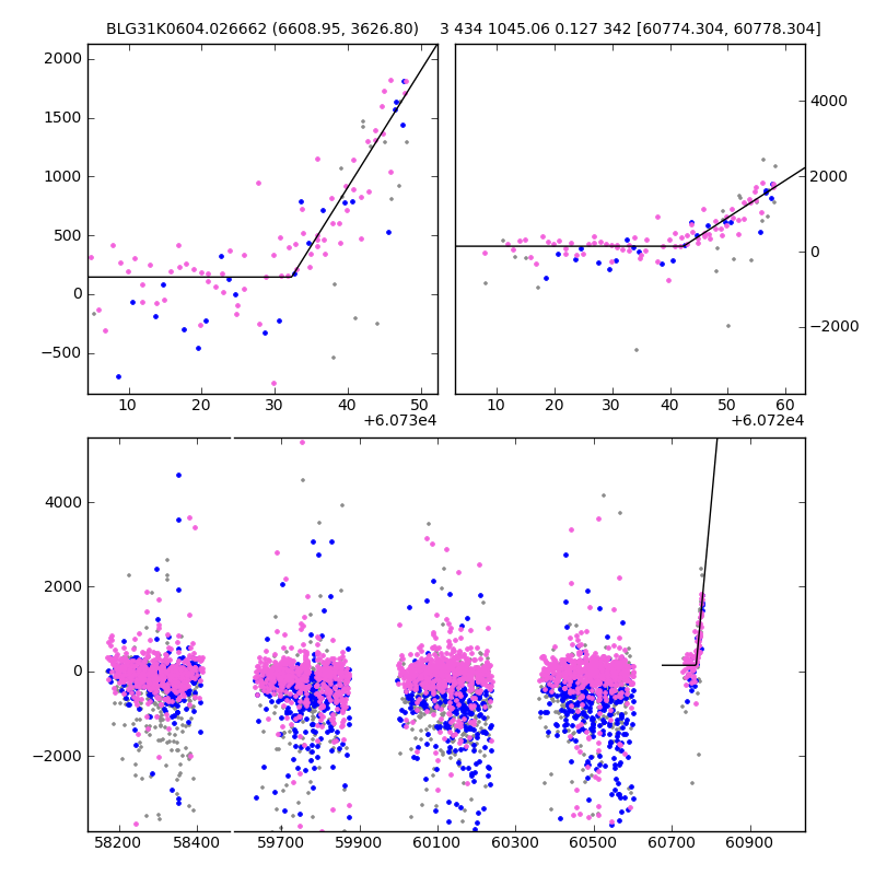 ● CTIO ● SAAO ● SSO ● Largest local dchi2 value (same as site of EVENT name) ● Local dchi2 is less than 0.05 times global dchi2 KMTA31_I.diapl KMTC31_I.diapl KMTS31_I.diapl gzipped tar file for all DIA data |