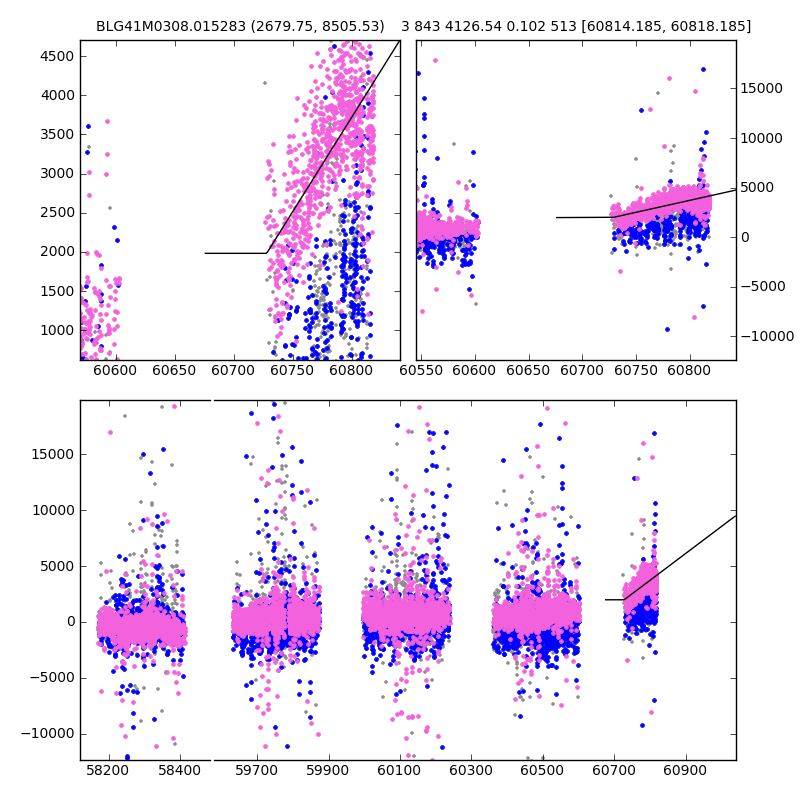 ● CTIO ● SAAO ● SSO ● Largest local dchi2 value (same as site of EVENT name) ● Local dchi2 is less than 0.05 times global dchi2 KMTA41_I.diapl KMTC41_I.diapl KMTS41_I.diapl gzipped tar file for all DIA data | |