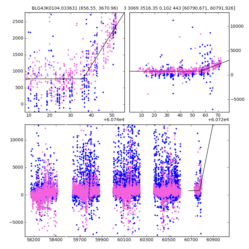● CTIO ● SAAO ● SSO ● Largest local dchi2 value (same as site of EVENT name) ● Local dchi2 is less than 0.05 times global dchi2 KMTA43_I.diapl KMTC43_I.diapl KMTS43_I.diapl gzipped tar file for all DIA data |