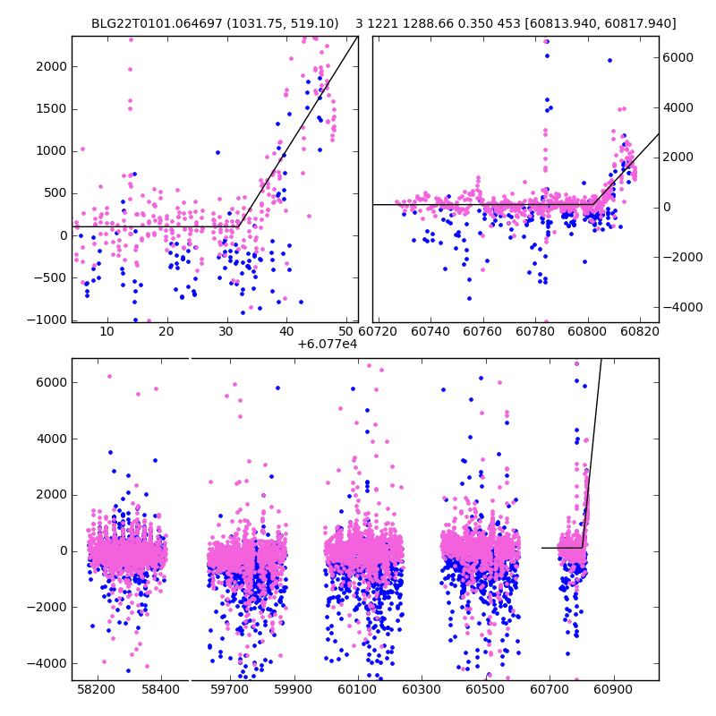 ● CTIO ● SAAO ● SSO ● Largest local dchi2 value (same as site of EVENT name) ● Local dchi2 is less than 0.05 times global dchi2 KMTA22_I.diapl KMTC22_I.diapl KMTS22_I.diapl gzipped tar file for all DIA data | |
