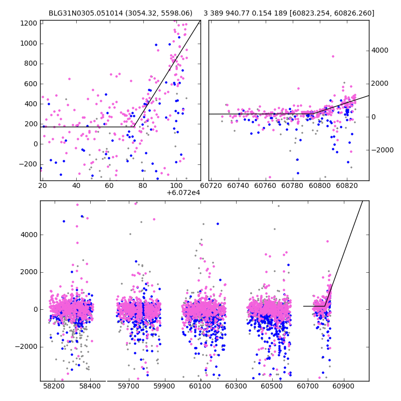 ● CTIO ● SAAO ● SSO ● Largest local dchi2 value (same as site of EVENT name) ● Local dchi2 is less than 0.05 times global dchi2 KMTA31_I.diapl KMTC31_I.diapl KMTS31_I.diapl gzipped tar file for all DIA data |