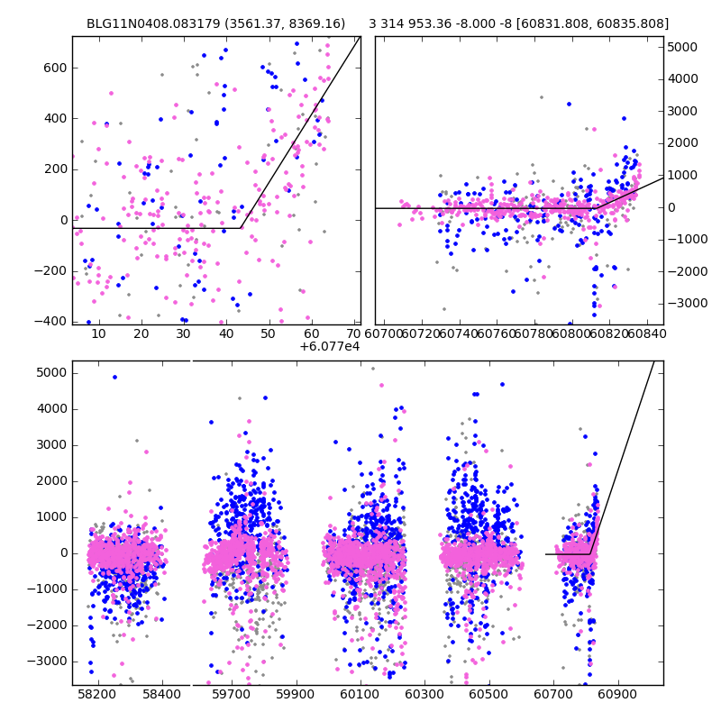 ● CTIO ● SAAO ● SSO ● Largest local dchi2 value (same as site of EVENT name) ● Local dchi2 is less than 0.05 times global dchi2 KMTA11_I.diapl KMTC11_I.diapl KMTS11_I.diapl gzipped tar file for all DIA data | |