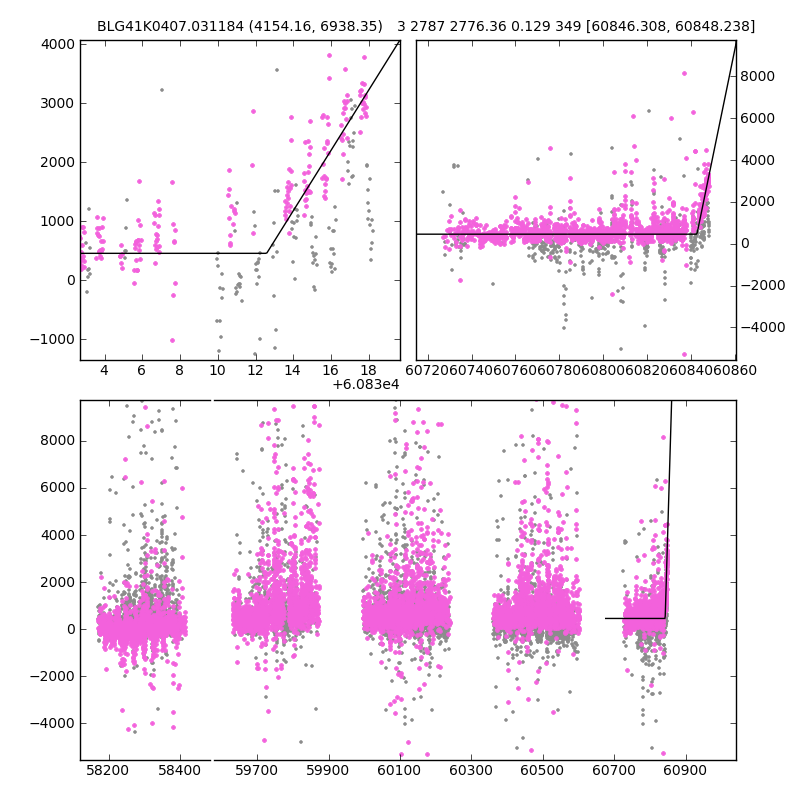 ● CTIO ● SAAO ● SSO ● Largest local dchi2 value (same as site of EVENT name) ● Local dchi2 is less than 0.05 times global dchi2 KMTA41_I.diapl KMTC41_I.diapl KMTS41_I.diapl gzipped tar file for all DIA data | |