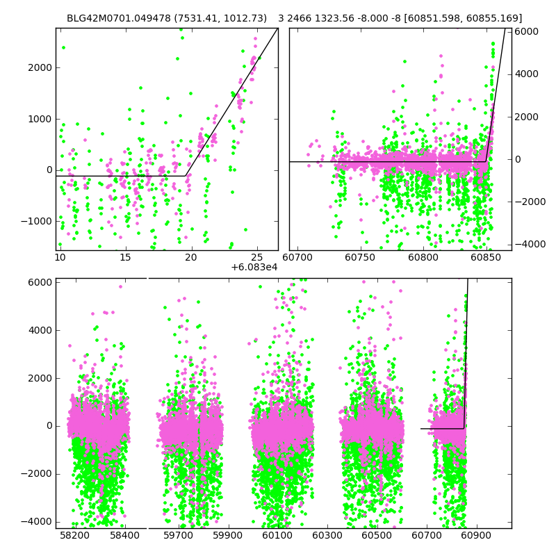 ● CTIO ● SAAO ● SSO ● Largest local dchi2 value (same as site of EVENT name) ● Local dchi2 is less than 0.05 times global dchi2 KMTA42_I.diapl KMTC42_I.diapl KMTS42_I.diapl gzipped tar file for all DIA data | |