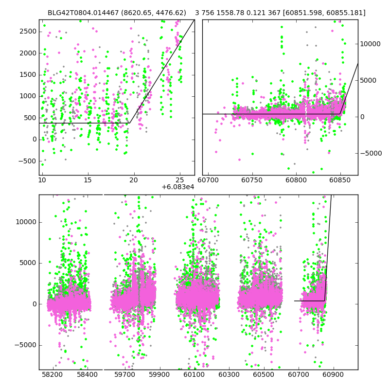 ● CTIO ● SAAO ● SSO ● Largest local dchi2 value (same as site of EVENT name) ● Local dchi2 is less than 0.05 times global dchi2 KMTA42_I.diapl KMTC42_I.diapl KMTS42_I.diapl gzipped tar file for all DIA data | |
