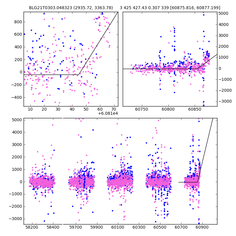 ● CTIO ● SAAO ● SSO ● Largest local dchi2 value (same as site of EVENT name) ● Local dchi2 is less than 0.05 times global dchi2 KMTA21_I.diapl KMTC21_I.diapl KMTS21_I.diapl gzipped tar file for all DIA data | |