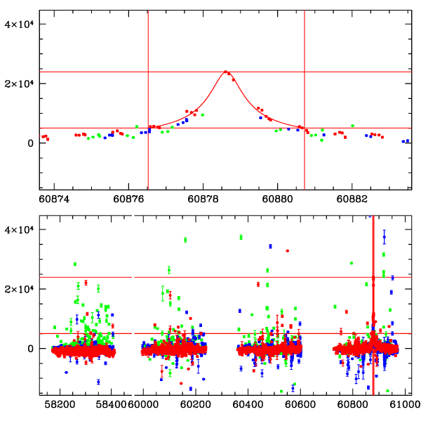 ● CTIO ● SAAO ● SSO ● Largest local dchi2 value (same as site of EVENT name) ● Local dchi2 is less than 0.05 times global dchi2 KMTA33_I.diapl KMTC33_I.diapl KMTS33_I.diapl gzipped tar file for all DIA data |