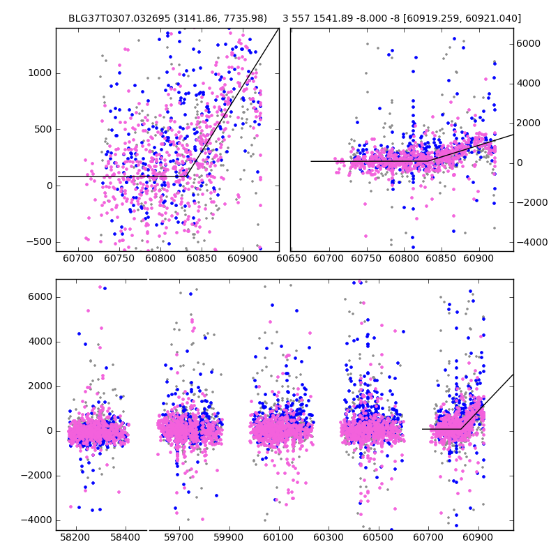 ● CTIO ● SAAO ● SSO ● Largest local dchi2 value (same as site of EVENT name) ● Local dchi2 is less than 0.05 times global dchi2 KMTA37_I.diapl KMTC37_I.diapl KMTS37_I.diapl gzipped tar file for all DIA data | |