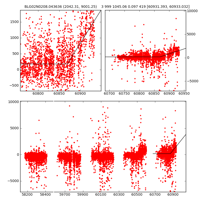● CTIO ● SAAO ● SSO ● Largest local dchi2 value (same as site of EVENT name) ● Local dchi2 is less than 0.05 times global dchi2 KMTA02_I.diapl KMTC02_I.diapl KMTS02_I.diapl gzipped tar file for all DIA data | |