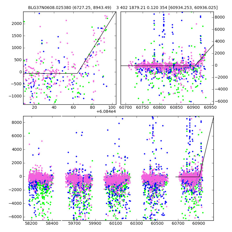 ● CTIO ● SAAO ● SSO ● Largest local dchi2 value (same as site of EVENT name) ● Local dchi2 is less than 0.05 times global dchi2 KMTA37_I.diapl KMTC37_I.diapl KMTS37_I.diapl gzipped tar file for all DIA data | |