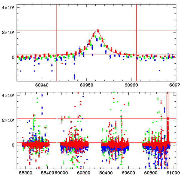 ● CTIO ● SAAO ● SSO ● Largest local dchi2 value (same as site of EVENT name) ● Local dchi2 is less than 0.05 times global dchi2 KMTA01_I.diapl KMTC01_I.diapl KMTS01_I.diapl gzipped tar file for all DIA data | |