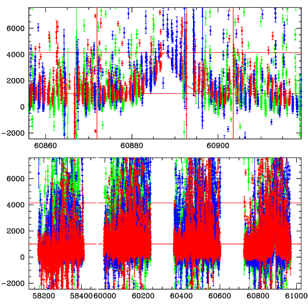 ● CTIO ● SAAO ● SSO ● Largest local dchi2 value (same as site of EVENT name) ● Local dchi2 is less than 0.05 times global dchi2 KMTA03_I.diapl KMTC03_I.diapl KMTS03_I.diapl gzipped tar file for all DIA data | |