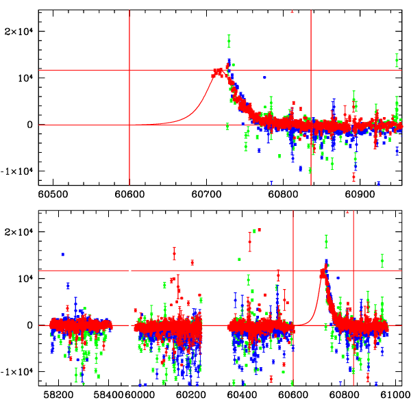 ● CTIO ● SAAO ● SSO ● Largest local dchi2 value (same as site of EVENT name) ● Local dchi2 is less than 0.05 times global dchi2 KMTA11_I.diapl KMTC11_I.diapl KMTS11_I.diapl gzipped tar file for all DIA data | |