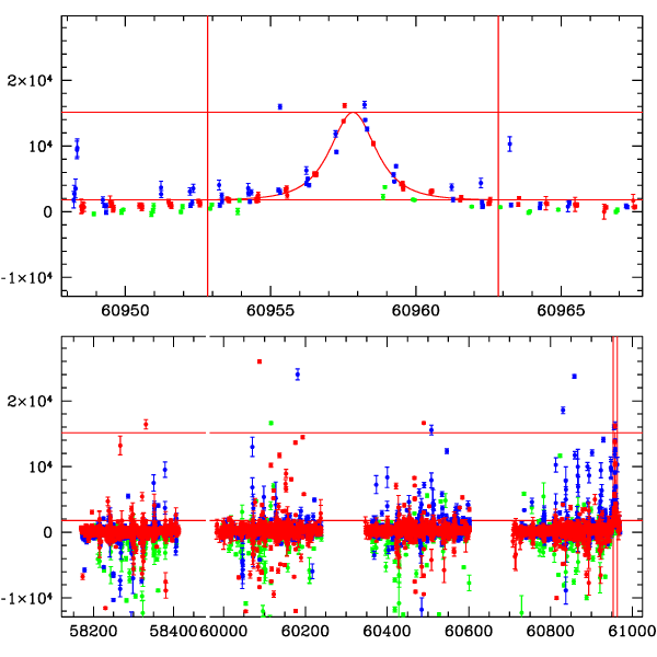 ● CTIO ● SAAO ● SSO ● Largest local dchi2 value (same as site of EVENT name) ● Local dchi2 is less than 0.05 times global dchi2 KMTA19_I.diapl KMTC19_I.diapl KMTS19_I.diapl gzipped tar file for all DIA data | |