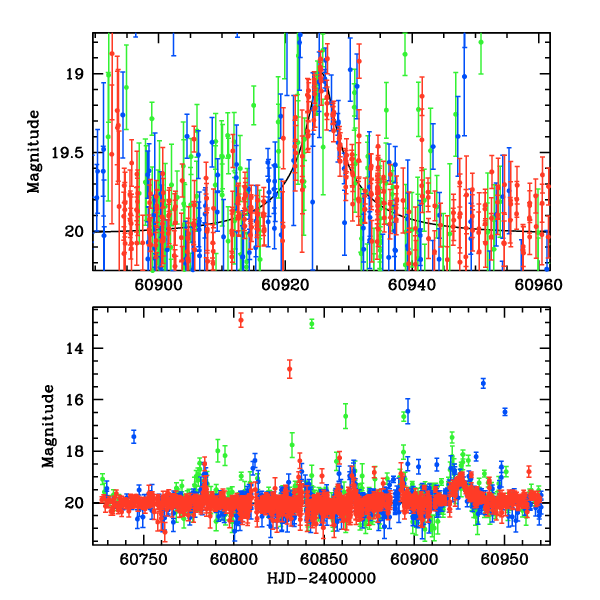 ● CTIO ● SAAO ● SSO ● Largest local dchi2 value (same as site of EVENT name) ● Local dchi2 is less than 0.05 times global dchi2 KMTA22_I.diapl KMTC22_I.diapl KMTS22_I.diapl gzipped tar file for all DIA data | |