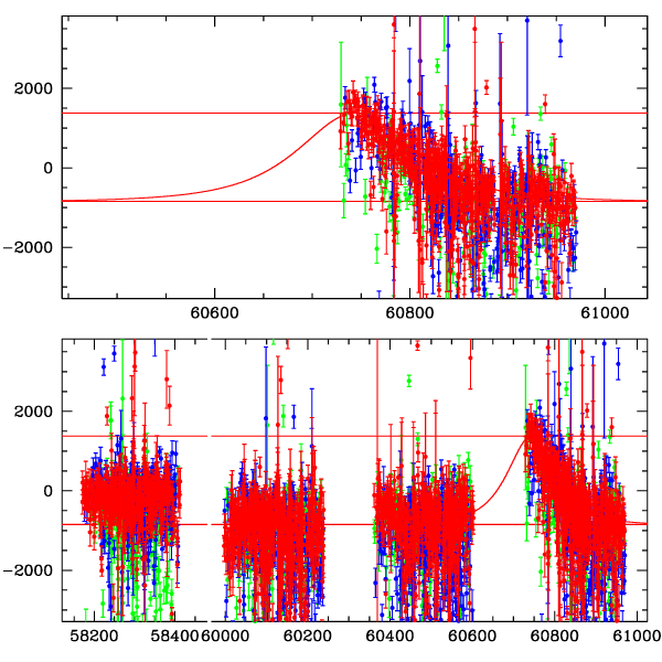 ● CTIO ● SAAO ● SSO ● Largest local dchi2 value (same as site of EVENT name) ● Local dchi2 is less than 0.05 times global dchi2 KMTA34_I.diapl KMTC34_I.diapl KMTS34_I.diapl gzipped tar file for all DIA data | |