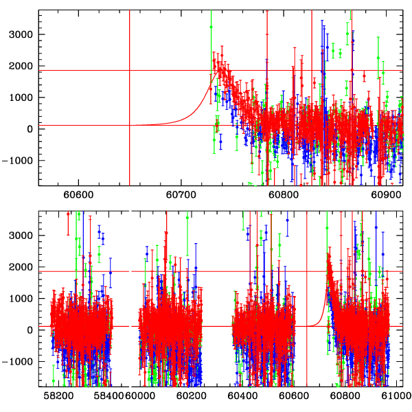 ● CTIO ● SAAO ● SSO ● Largest local dchi2 value (same as site of EVENT name) ● Local dchi2 is less than 0.05 times global dchi2 KMTA34_I.diapl KMTC34_I.diapl KMTS34_I.diapl gzipped tar file for all DIA data | |