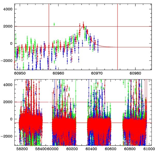 ● CTIO ● SAAO ● SSO ● Largest local dchi2 value (same as site of EVENT name) ● Local dchi2 is less than 0.05 times global dchi2 KMTA43_I.diapl KMTC43_I.diapl KMTS43_I.diapl gzipped tar file for all DIA data | |