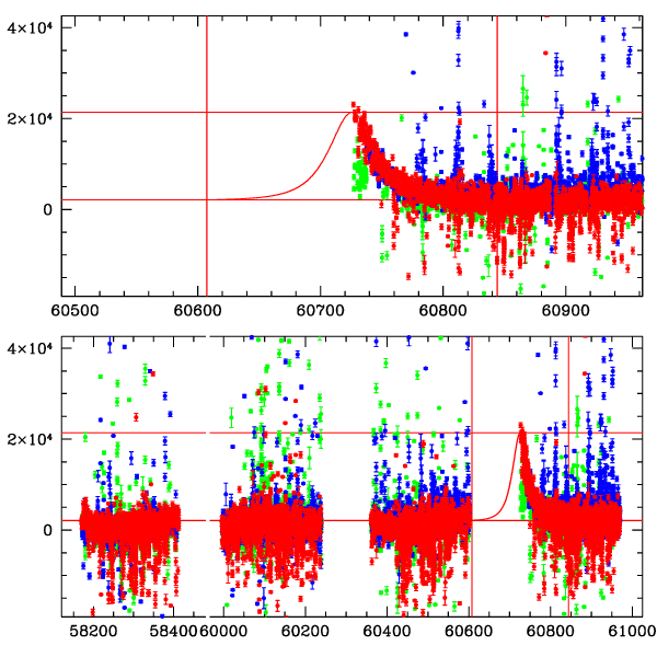 ● CTIO ● SAAO ● SSO ● Largest local dchi2 value (same as site of EVENT name) ● Local dchi2 is less than 0.05 times global dchi2 KMTA43_I.diapl KMTC43_I.diapl KMTS43_I.diapl gzipped tar file for all DIA data | |