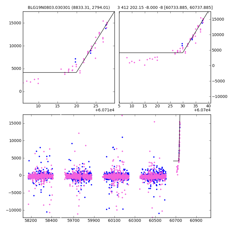 ● CTIO ● SAAO ● SSO ● Largest local dchi2 value (same as site of EVENT name) ● Local dchi2 is less than 0.05 times global dchi2 KMTA19_I.diapl KMTC19_I.diapl KMTS19_I.diapl gzipped tar file for all DIA data |