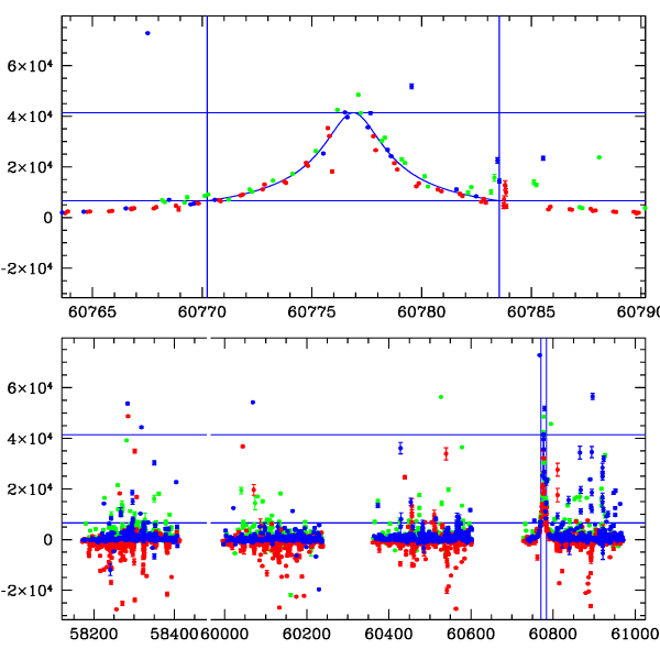 ● CTIO ● SAAO ● SSO ● Largest local dchi2 value (same as site of EVENT name) ● Local dchi2 is less than 0.05 times global dchi2 KMTA33_I.diapl KMTC33_I.diapl KMTS33_I.diapl gzipped tar file for all DIA data |