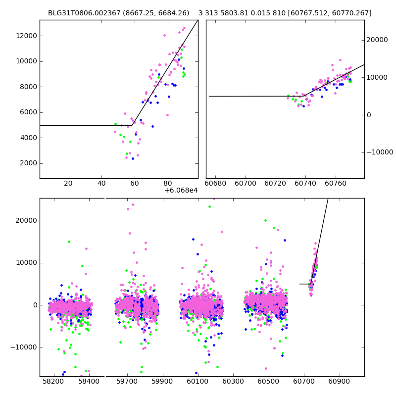 ● CTIO ● SAAO ● SSO ● Largest local dchi2 value (same as site of EVENT name) ● Local dchi2 is less than 0.05 times global dchi2 KMTA31_I.diapl KMTC31_I.diapl KMTS31_I.diapl gzipped tar file for all DIA data |