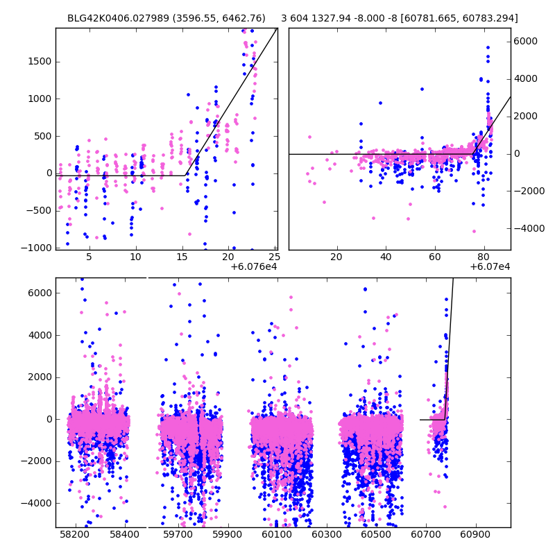 ● CTIO ● SAAO ● SSO ● Largest local dchi2 value (same as site of EVENT name) ● Local dchi2 is less than 0.05 times global dchi2 KMTA42_I.diapl KMTC42_I.diapl KMTS42_I.diapl gzipped tar file for all DIA data | |