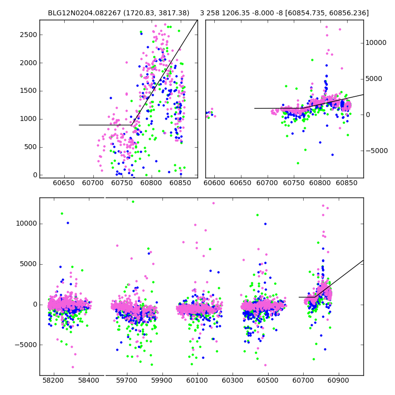 ● CTIO ● SAAO ● SSO ● Largest local dchi2 value (same as site of EVENT name) ● Local dchi2 is less than 0.05 times global dchi2 KMTA12_I.diapl KMTC12_I.diapl KMTS12_I.diapl gzipped tar file for all DIA data | |