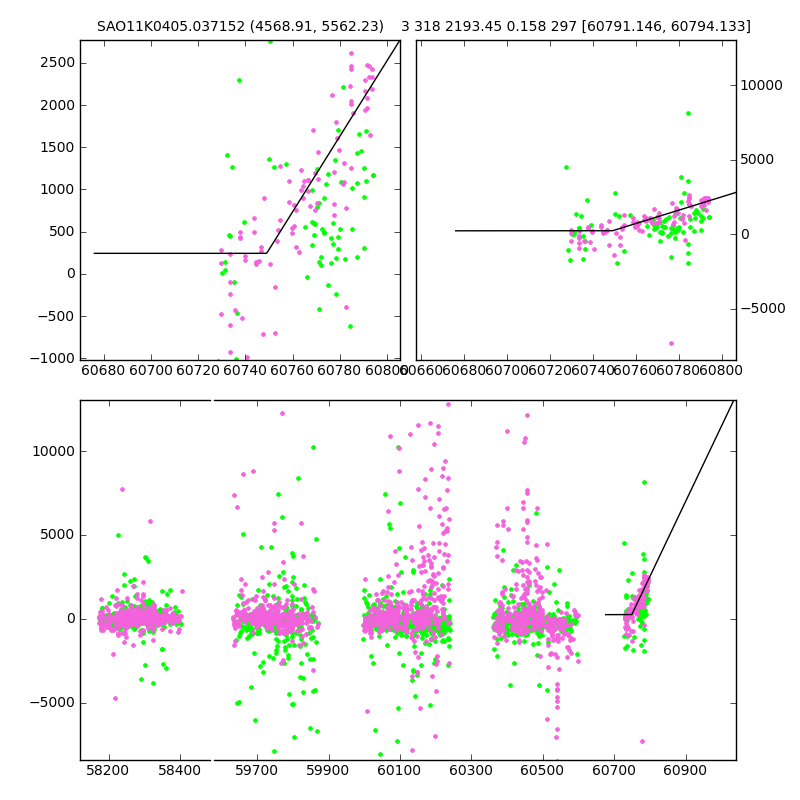 ● CTIO ● SAAO ● SSO ● Largest local dchi2 value (same as site of EVENT name) ● Local dchi2 is less than 0.05 times global dchi2 KMTA11_I.diapl KMTC11_I.diapl KMTS11_I.diapl gzipped tar file for all DIA data | |