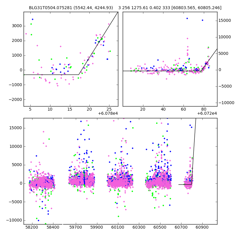 ● CTIO ● SAAO ● SSO ● Largest local dchi2 value (same as site of EVENT name) ● Local dchi2 is less than 0.05 times global dchi2 KMTA31_I.diapl KMTC31_I.diapl KMTS31_I.diapl gzipped tar file for all DIA data | |