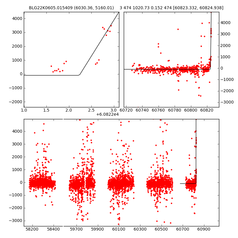 ● CTIO ● SAAO ● SSO ● Largest local dchi2 value (same as site of EVENT name) ● Local dchi2 is less than 0.05 times global dchi2 KMTA22_I.diapl KMTC22_I.diapl KMTS22_I.diapl gzipped tar file for all DIA data | |