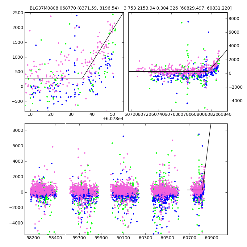 ● CTIO ● SAAO ● SSO ● Largest local dchi2 value (same as site of EVENT name) ● Local dchi2 is less than 0.05 times global dchi2 KMTA37_I.diapl KMTC37_I.diapl KMTS37_I.diapl gzipped tar file for all DIA data |