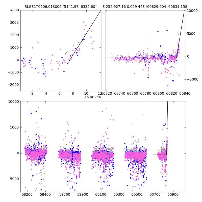 ● CTIO ● SAAO ● SSO ● Largest local dchi2 value (same as site of EVENT name) ● Local dchi2 is less than 0.05 times global dchi2 KMTA31_I.diapl KMTC31_I.diapl KMTS31_I.diapl gzipped tar file for all DIA data | |