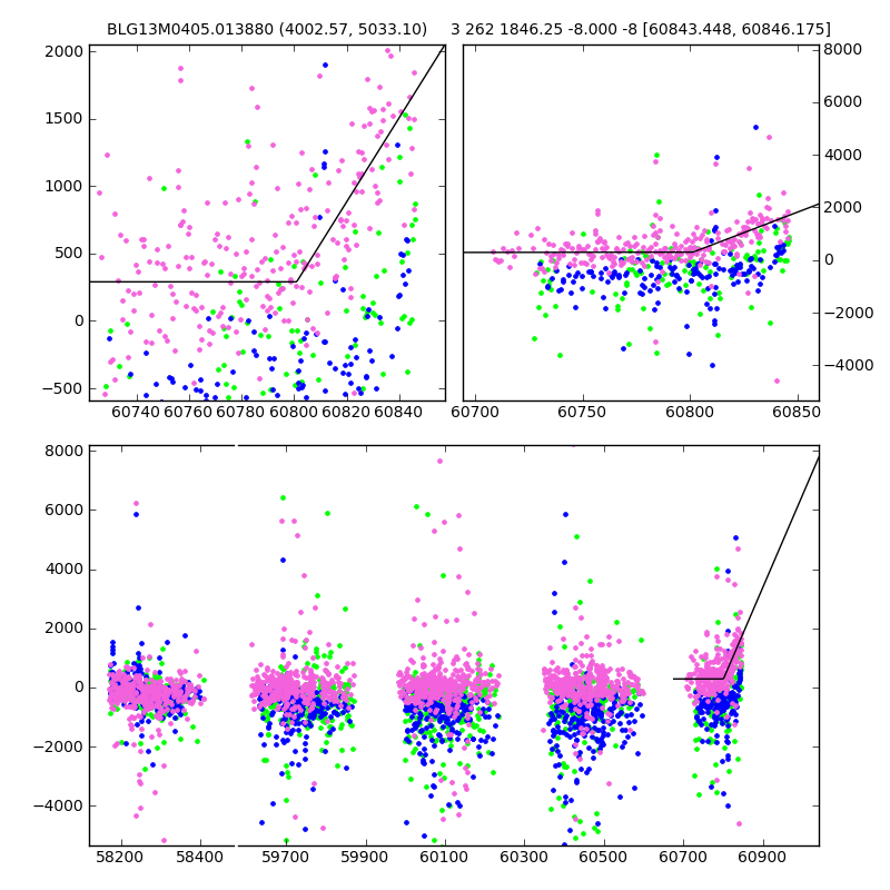 ● CTIO ● SAAO ● SSO ● Largest local dchi2 value (same as site of EVENT name) ● Local dchi2 is less than 0.05 times global dchi2 KMTA13_I.diapl KMTC13_I.diapl KMTS13_I.diapl gzipped tar file for all DIA data | |