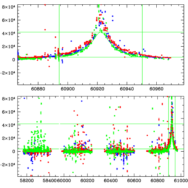 ● CTIO ● SAAO ● SSO ● Largest local dchi2 value (same as site of EVENT name) ● Local dchi2 is less than 0.05 times global dchi2 KMTA14_I.diapl KMTC14_I.diapl KMTS14_I.diapl gzipped tar file for all DIA data |