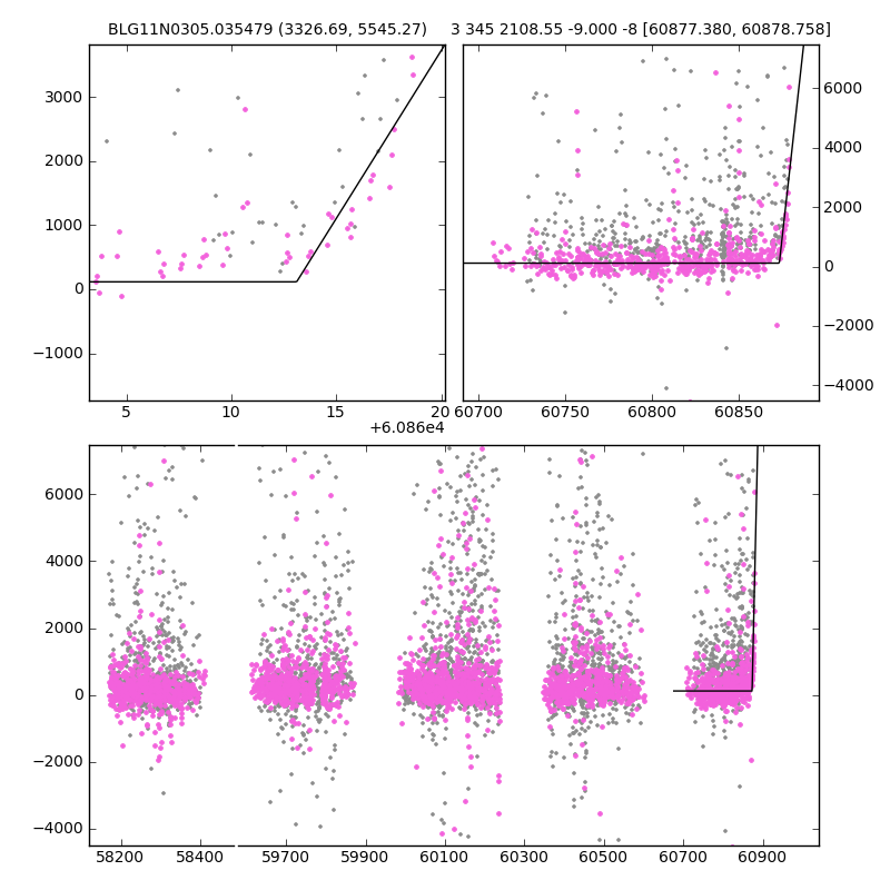 ● CTIO ● SAAO ● SSO ● Largest local dchi2 value (same as site of EVENT name) ● Local dchi2 is less than 0.05 times global dchi2 KMTA11_I.diapl KMTC11_I.diapl KMTS11_I.diapl gzipped tar file for all DIA data | |