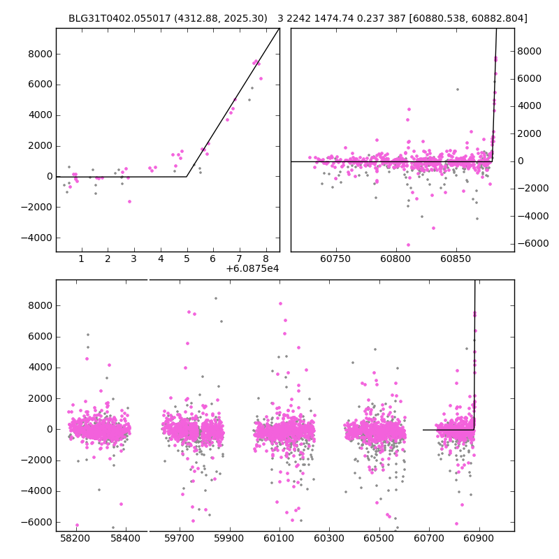 ● CTIO ● SAAO ● SSO ● Largest local dchi2 value (same as site of EVENT name) ● Local dchi2 is less than 0.05 times global dchi2 KMTA31_I.diapl KMTC31_I.diapl KMTS31_I.diapl gzipped tar file for all DIA data |