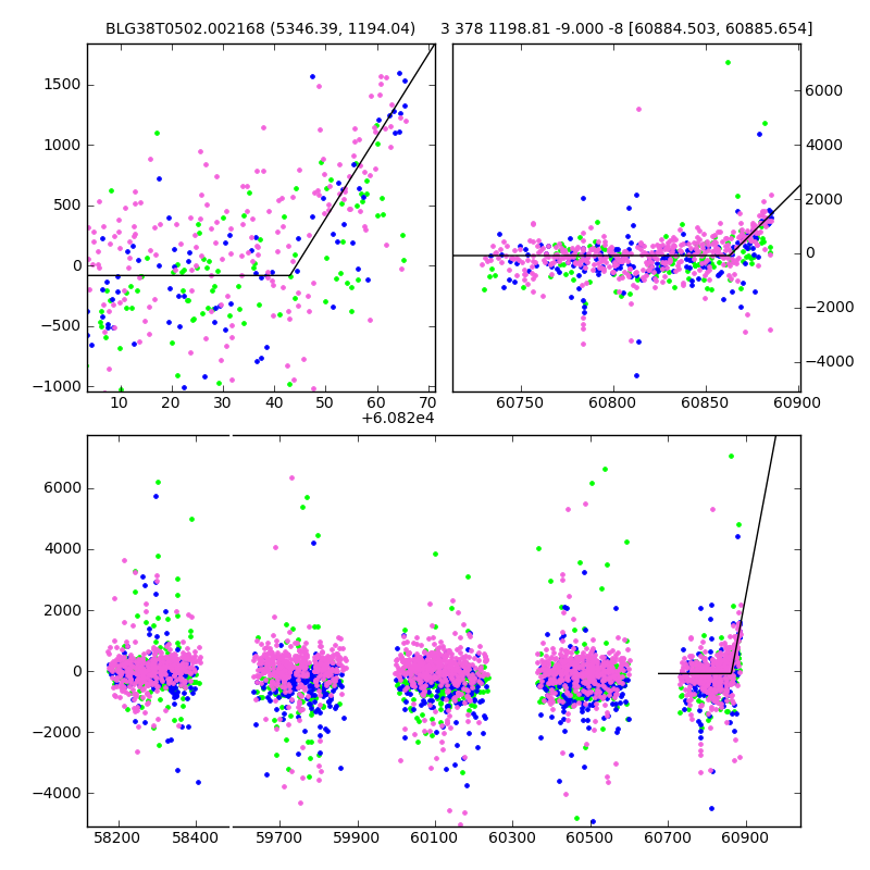 ● CTIO ● SAAO ● SSO ● Largest local dchi2 value (same as site of EVENT name) ● Local dchi2 is less than 0.05 times global dchi2 KMTA38_I.diapl KMTC38_I.diapl KMTS38_I.diapl gzipped tar file for all DIA data | |