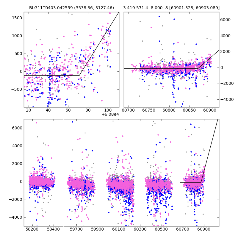 ● CTIO ● SAAO ● SSO ● Largest local dchi2 value (same as site of EVENT name) ● Local dchi2 is less than 0.05 times global dchi2 KMTA11_I.diapl KMTC11_I.diapl KMTS11_I.diapl gzipped tar file for all DIA data | |