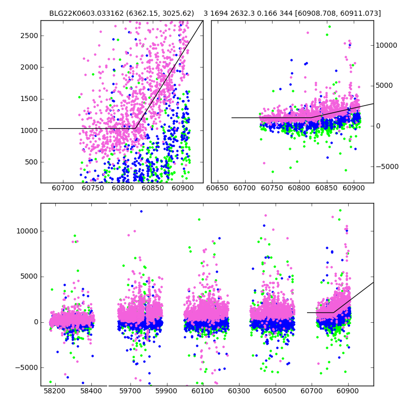 ● CTIO ● SAAO ● SSO ● Largest local dchi2 value (same as site of EVENT name) ● Local dchi2 is less than 0.05 times global dchi2 KMTA22_I.diapl KMTC22_I.diapl KMTS22_I.diapl gzipped tar file for all DIA data | |