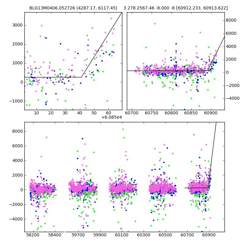 ● CTIO ● SAAO ● SSO ● Largest local dchi2 value (same as site of EVENT name) ● Local dchi2 is less than 0.05 times global dchi2 KMTA13_I.diapl KMTC13_I.diapl KMTS13_I.diapl gzipped tar file for all DIA data | |