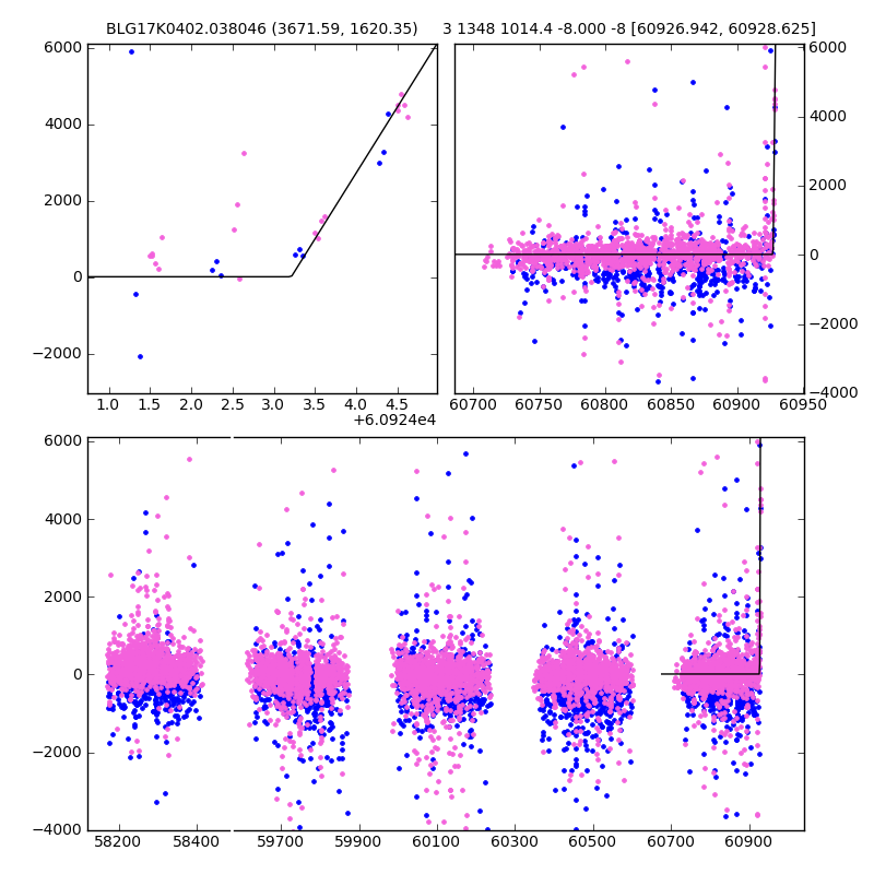 ● CTIO ● SAAO ● SSO ● Largest local dchi2 value (same as site of EVENT name) ● Local dchi2 is less than 0.05 times global dchi2 KMTA17_I.diapl KMTC17_I.diapl KMTS17_I.diapl gzipped tar file for all DIA data |