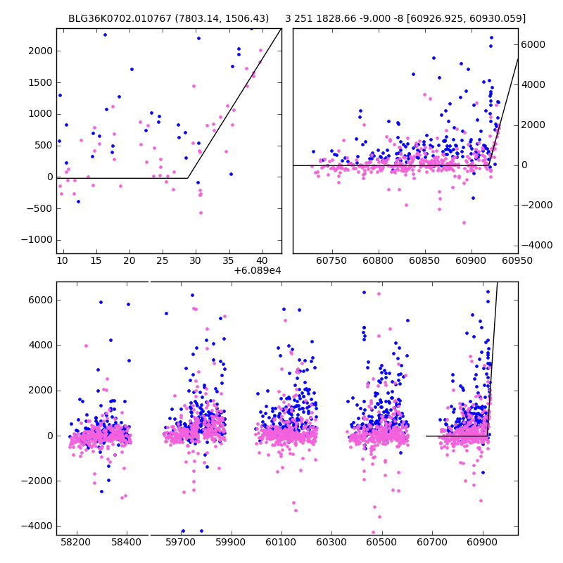 ● CTIO ● SAAO ● SSO ● Largest local dchi2 value (same as site of EVENT name) ● Local dchi2 is less than 0.05 times global dchi2 KMTA36_I.diapl KMTC36_I.diapl KMTS36_I.diapl gzipped tar file for all DIA data | |