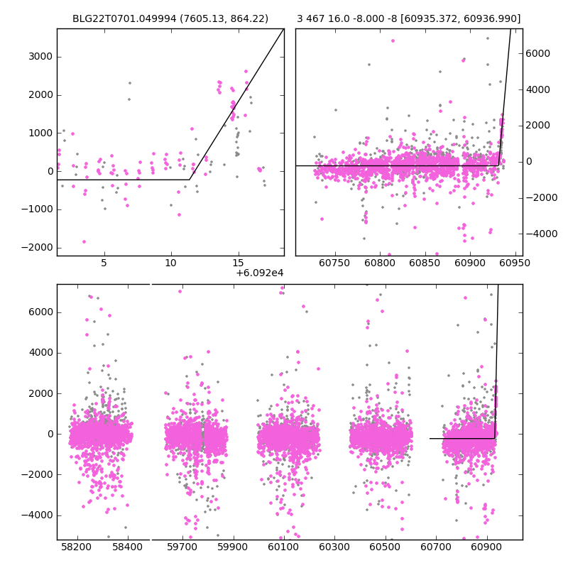 ● CTIO ● SAAO ● SSO ● Largest local dchi2 value (same as site of EVENT name) ● Local dchi2 is less than 0.05 times global dchi2 KMTA22_I.diapl KMTC22_I.diapl KMTS22_I.diapl gzipped tar file for all DIA data | |