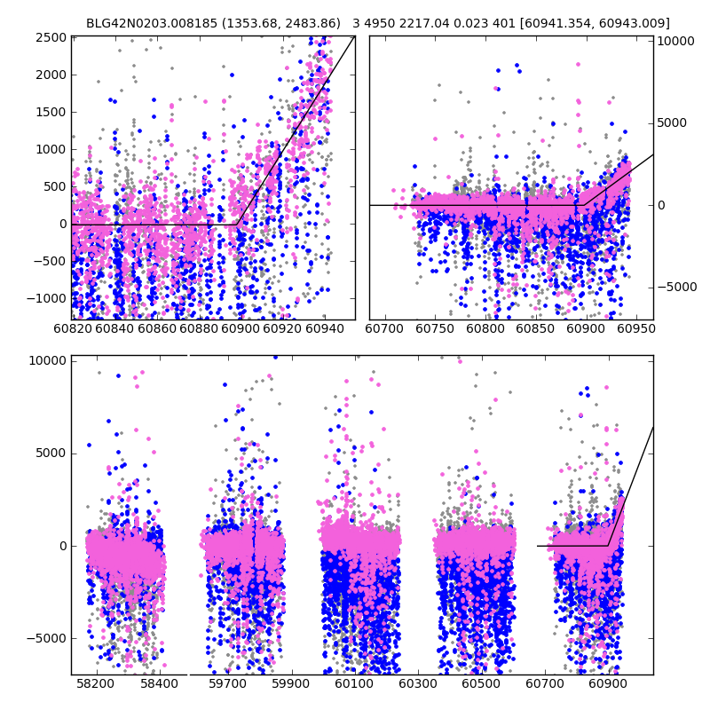 ● CTIO ● SAAO ● SSO ● Largest local dchi2 value (same as site of EVENT name) ● Local dchi2 is less than 0.05 times global dchi2 KMTA42_I.diapl KMTC42_I.diapl KMTS42_I.diapl gzipped tar file for all DIA data | |