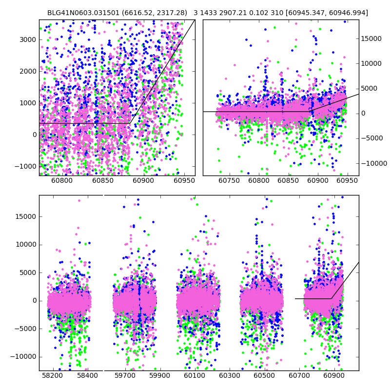 ● CTIO ● SAAO ● SSO ● Largest local dchi2 value (same as site of EVENT name) ● Local dchi2 is less than 0.05 times global dchi2 KMTA41_I.diapl KMTC41_I.diapl KMTS41_I.diapl gzipped tar file for all DIA data | |