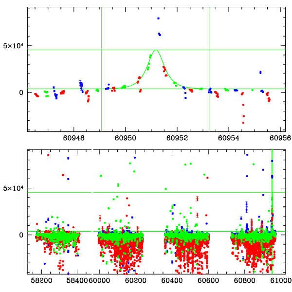● CTIO ● SAAO ● SSO ● Largest local dchi2 value (same as site of EVENT name) ● Local dchi2 is less than 0.05 times global dchi2 KMTA01_I.diapl KMTC01_I.diapl KMTS01_I.diapl gzipped tar file for all DIA data | |