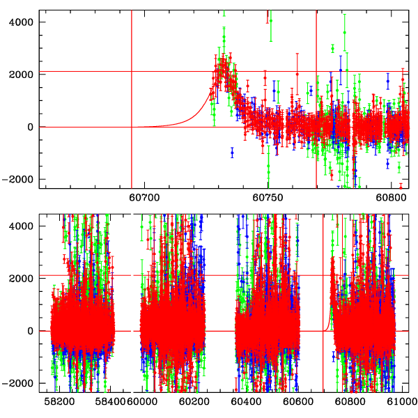 ● CTIO ● SAAO ● SSO ● Largest local dchi2 value (same as site of EVENT name) ● Local dchi2 is less than 0.05 times global dchi2 KMTA01_I.diapl KMTC01_I.diapl KMTS01_I.diapl gzipped tar file for all DIA data | |