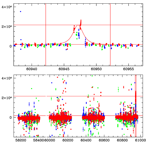 ● CTIO ● SAAO ● SSO ● Largest local dchi2 value (same as site of EVENT name) ● Local dchi2 is less than 0.05 times global dchi2 KMTA01_I.diapl KMTC01_I.diapl KMTS01_I.diapl gzipped tar file for all DIA data | |