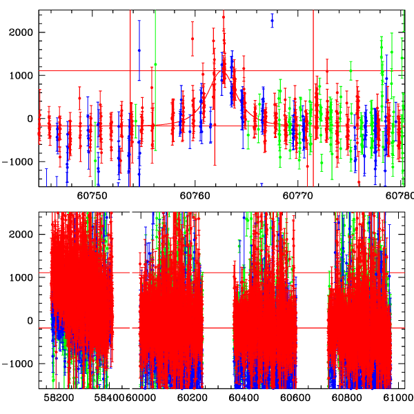 ● CTIO ● SAAO ● SSO ● Largest local dchi2 value (same as site of EVENT name) ● Local dchi2 is less than 0.05 times global dchi2 KMTA01_I.diapl KMTC01_I.diapl KMTS01_I.diapl gzipped tar file for all DIA data | |